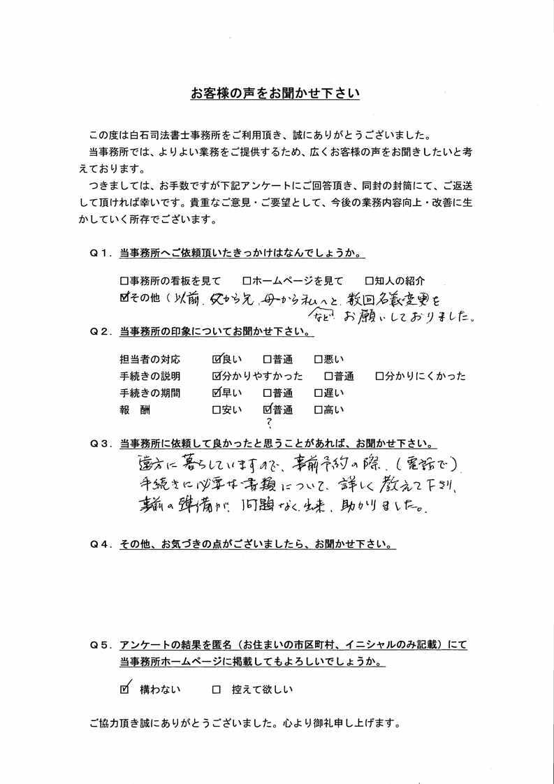Q.ご依頼のきっかけは?A.以前、父から兄、母から私など、数回名義変更をお願いしました。
