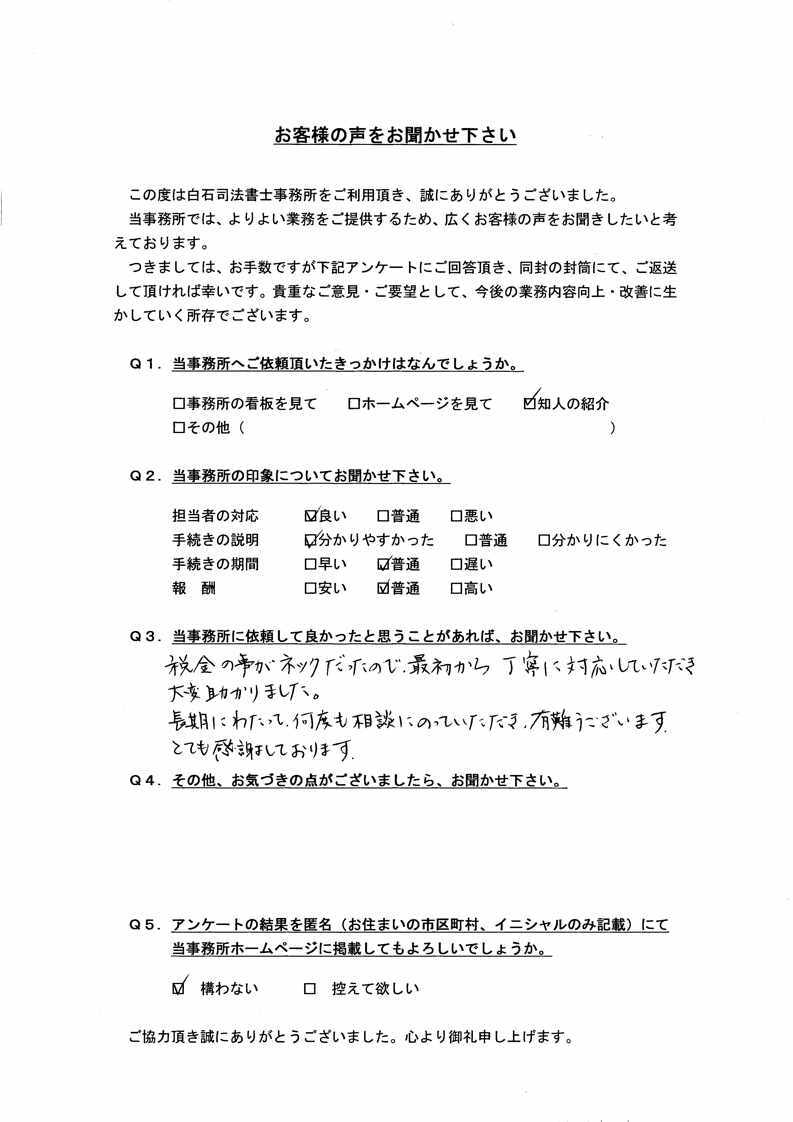 A.税金の事がネックだったので、最初から丁寧に対応して頂き大変助かりました。長期に渡って何度も相談にのって頂きありがとうございます。とても感謝しております。